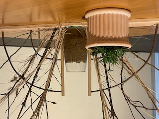 De bol is nog groener geworden, er is hoop. Er is een V-vorm, een vredesteken, gemaakt van brem door de takken te bundelen en te binden. De roze tulp symboliseert het gebed en is tussen de V-vorm geplaatst..