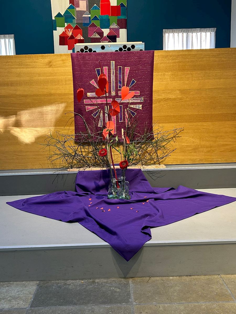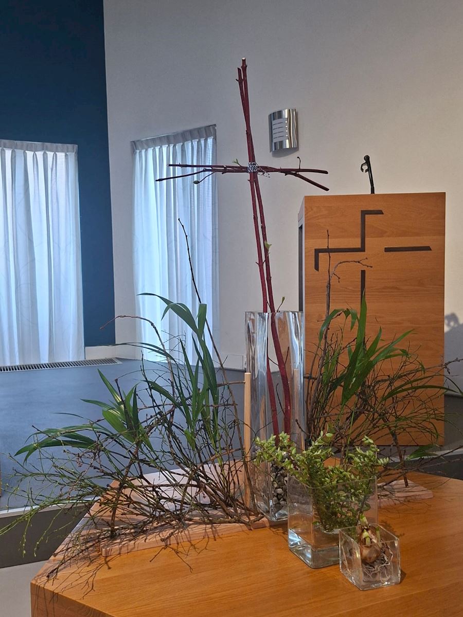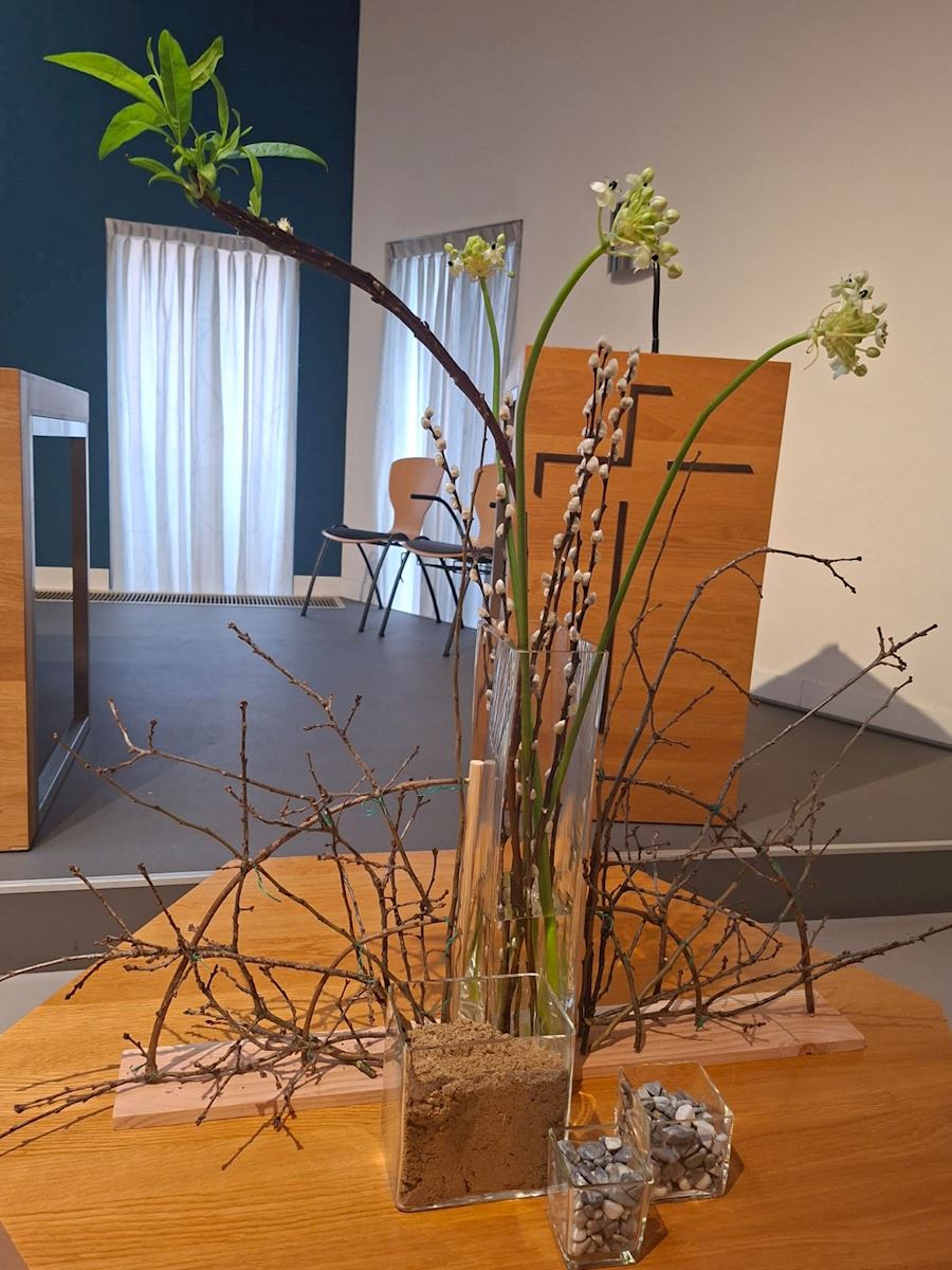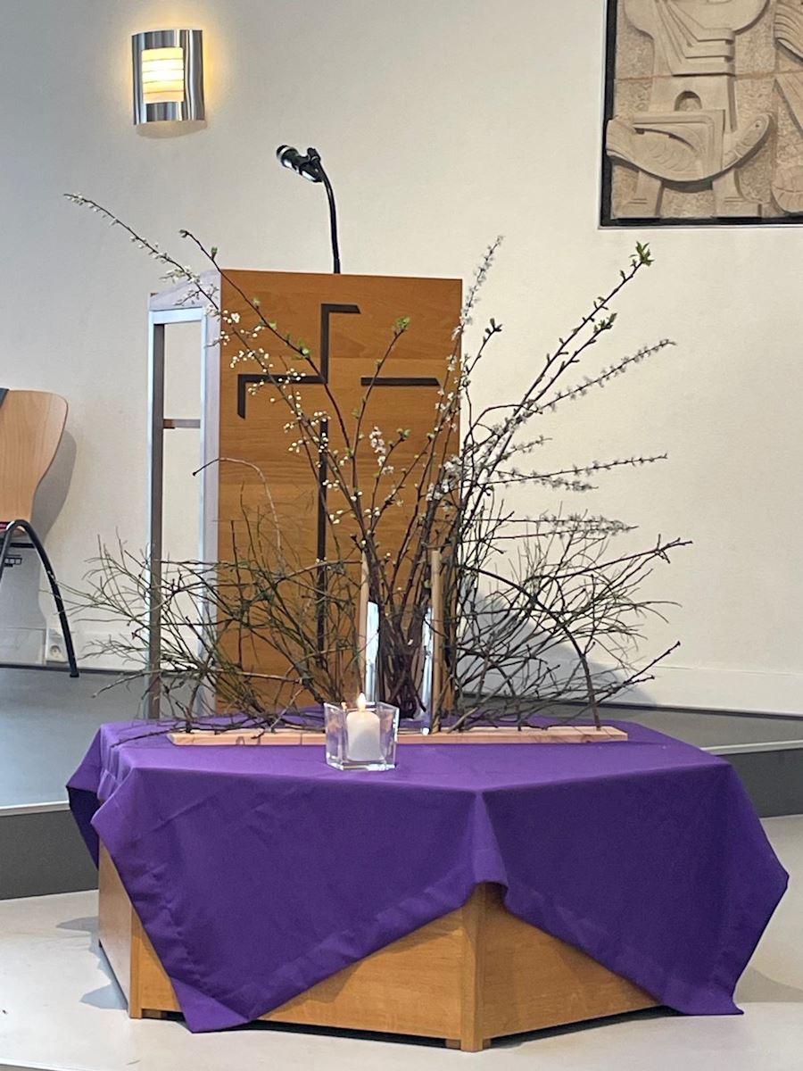 Vandaag is het de eerste zondag van de liturgische bloemschikkingen voor de Veertigdagentijd en Pasen.