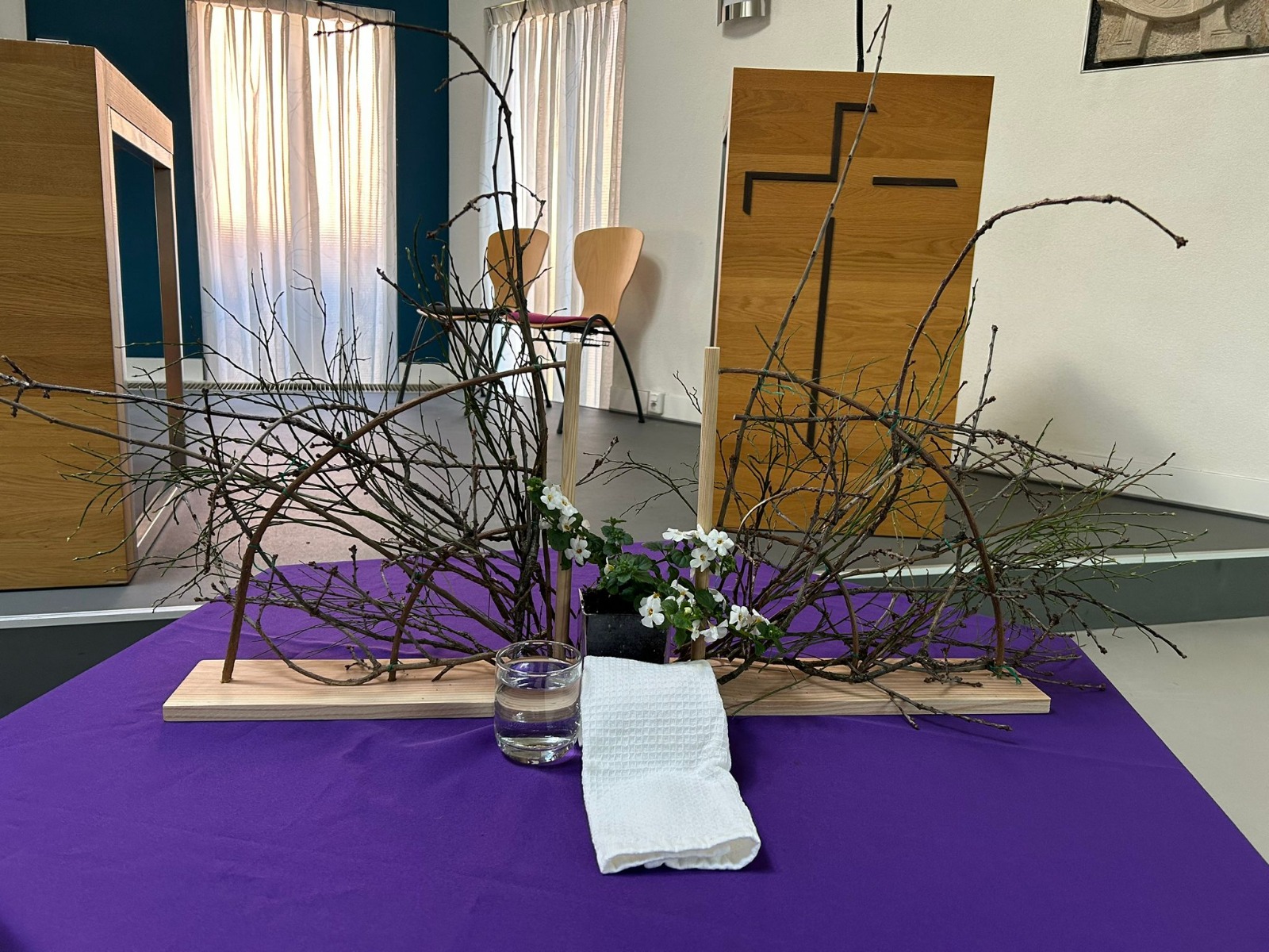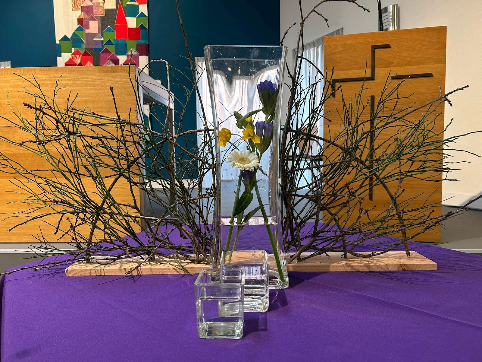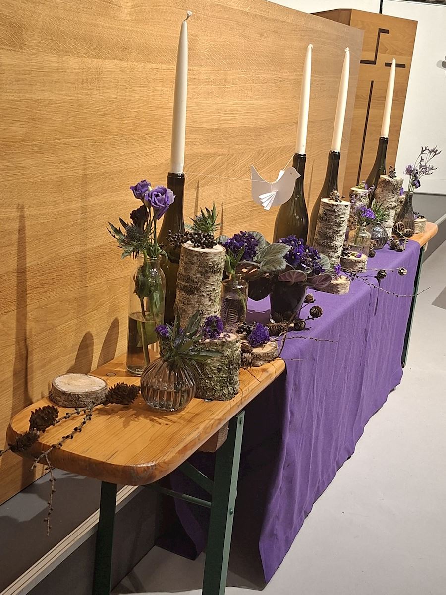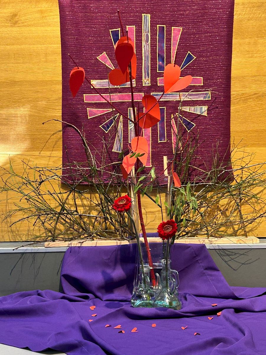Vandaag is het de eerste zondag van de liturgische bloemschikkingen voor de Veertigdagentijd en Pasen.