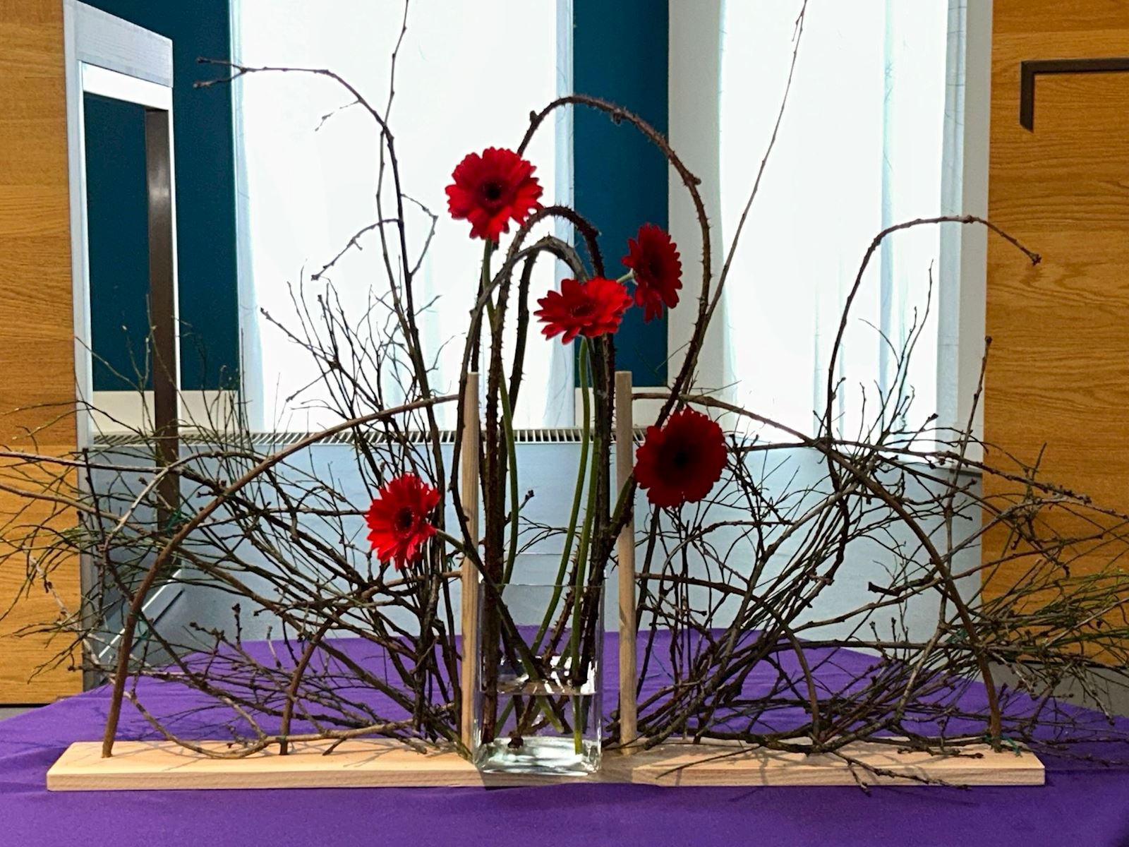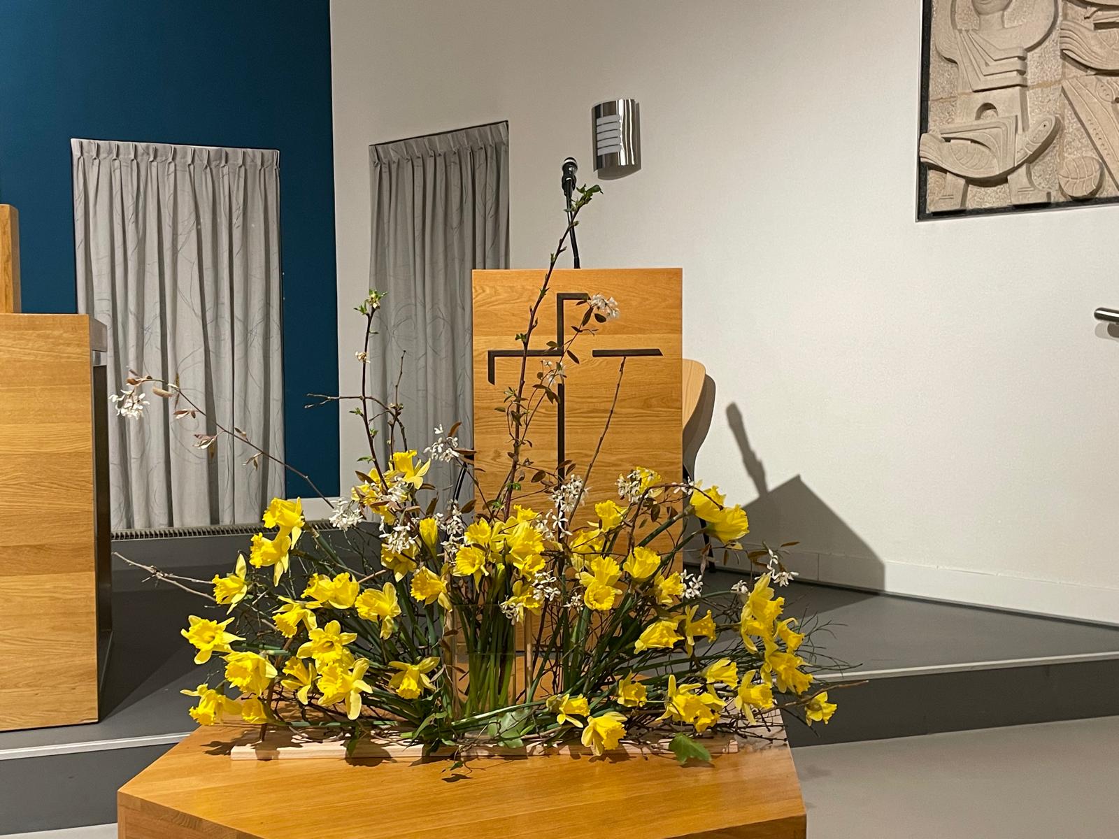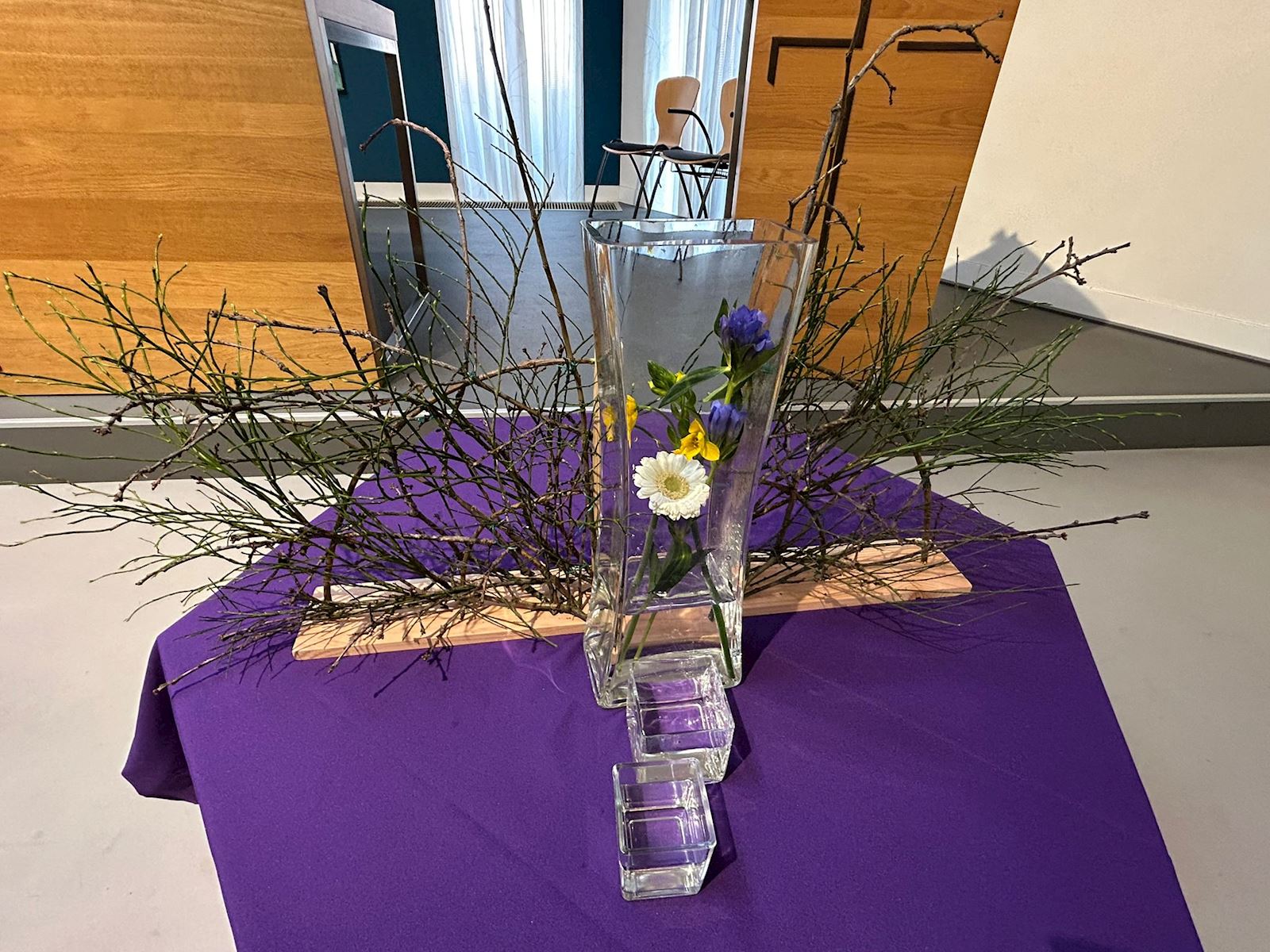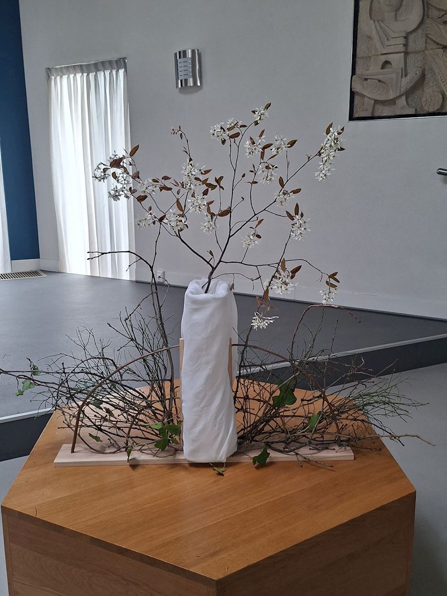 Vandaag is het de eerste zondag van de liturgische bloemschikkingen voor de Veertigdagentijd en Pasen.