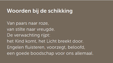 In elke Nieuwsbrief van de komende weken zal er een uitgebreide toelichting op de bloemschikkingen opgenomen worden.