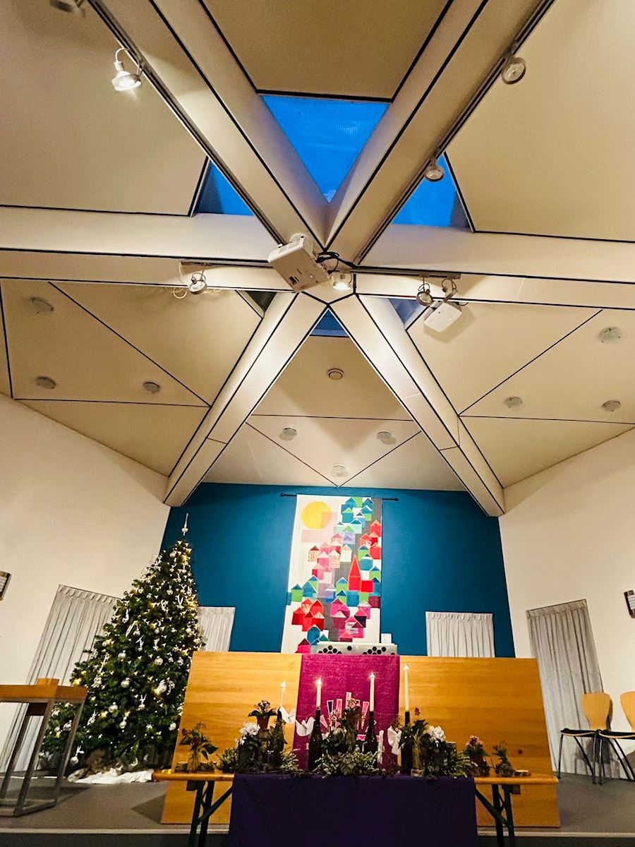 We zien aan de kaars in het midden hoe het licht van Gods aanwezigheid verborgen kan zijn en er toch is.
