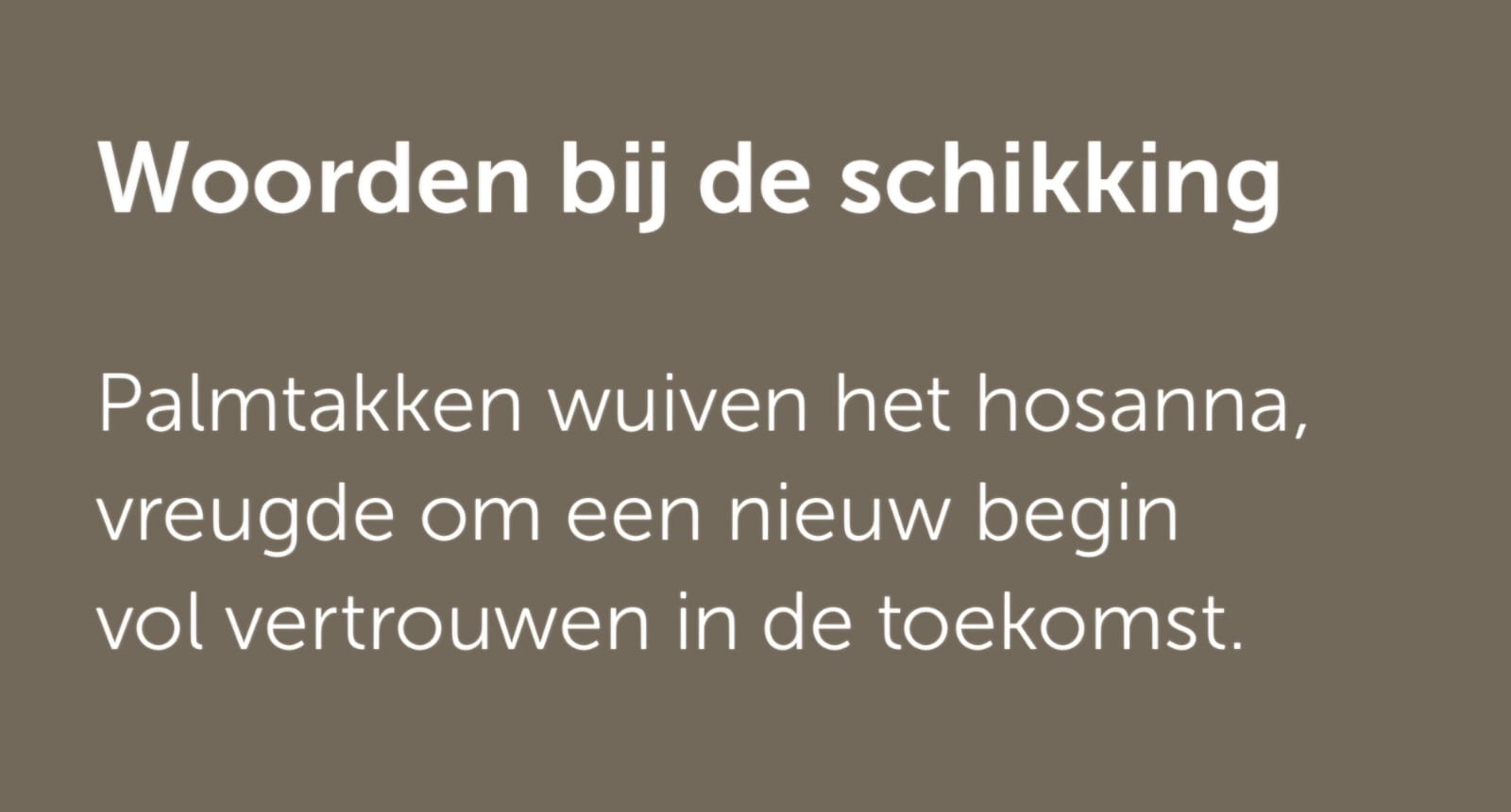 Kernwoorden voor deze week zijn: feest, hosanna, intocht, vooruitkijken naar de Goede week.